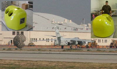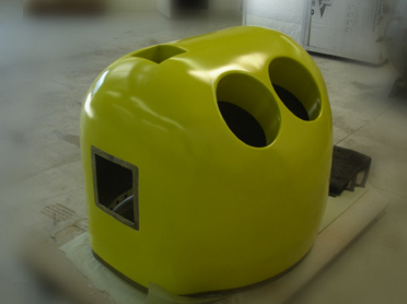 This tail cone was laminated over a one off male plug. The cooling ports were laminated in a separate CNC tool and structurally bonded into the laminate with a vacuum bag process. Parts were finished off using an epoxy primer. |